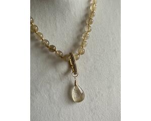 Golden Rutilated Quartz Knotted Necklace With CZ Charm